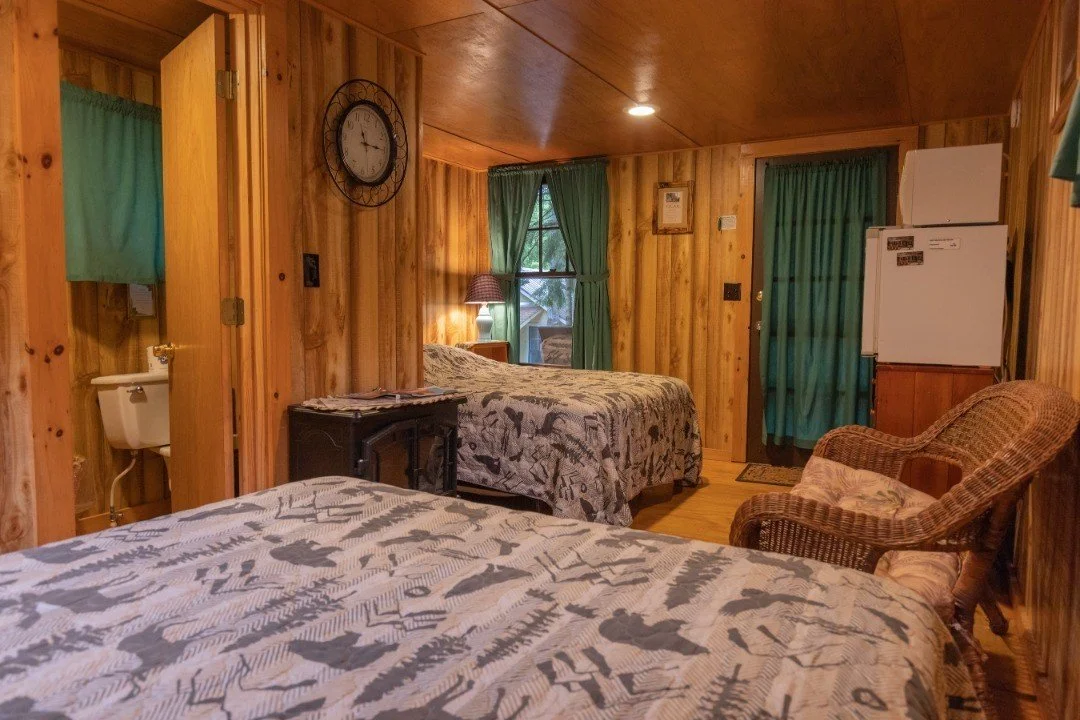 The Vermont Cottage is a “Motel Unit” Cottage that sleeps up to four people. It has two double beds, a small bathroom with a stand up shower, a small refrigerator and a microwave. Coffee is served daily at the office, and we also have coffee pots and toasters upon request. Linens are provided with this cottage, unless rented for a week. There is heat and high speed internet, but no AC or TVS. The Vermont Cottage is available for nightly and weekly rentals.